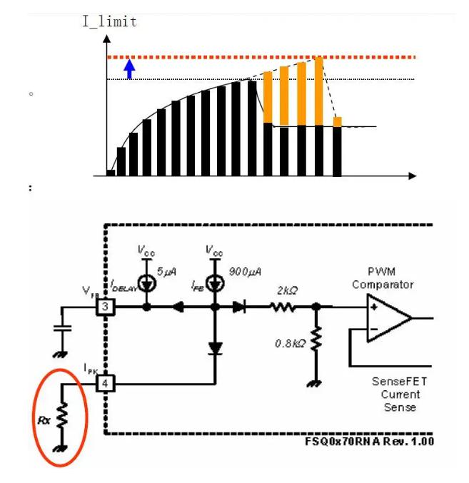 將與Pin4相接的電阻增大,從外部電流源Ifb分流更小,使作為電流限定參考電壓的PWM比擬器正輸出真個電壓將回升,即許可更大的電流經由過程MOSFET/變壓器,可以或許或許供應更大的能量。